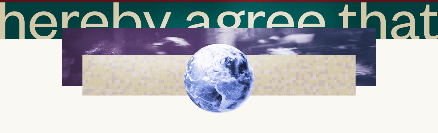 Language as atmosphere: I treated contract text as a raw material. By composing legal prose into dense, structured surfaces, text becomes texture. It creates an environment that feels systematic and layered, suggesting that the brand is built from the legal logic it represents.
