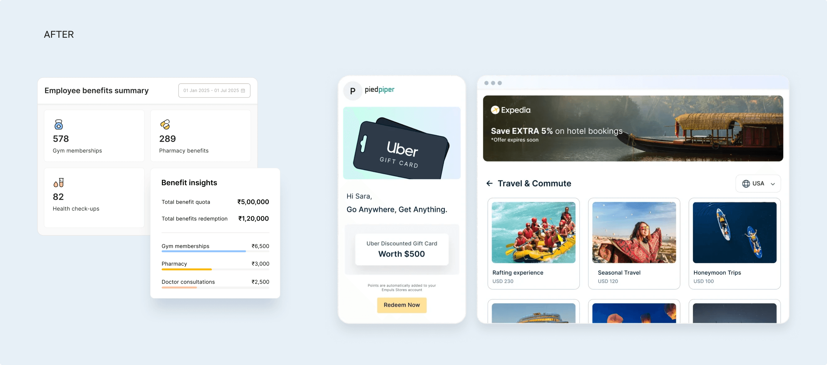 Within that shared grammar in place, tone was adapted to context. Empuls required warmth and human presence to support recognition and culture. Compass required clarity and structure to reflect performance metrics and incentive mechanics.